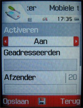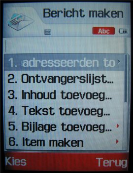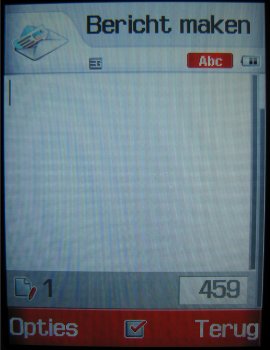 Het invoeren van een bericht via T9 of de standaard invoerfunctionaliteit gaat goed. Er zijn daar geen problemen teruggevonden. De berichten kunnen verstuurd worden en opgeslagen, alleen opgeslagen of alleen verstuurd worden naar de afzender. Ook kan men diverse nummers instellen waarvan men geen berichten wil ontvangen. Tevens zijn antwoordverzoek en ontvangstbevestiging ook aanwezig.
