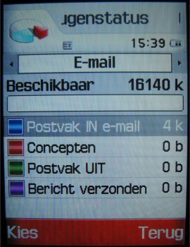 Op het toestel kan de gebruiker maximaal 420 SMS berichten en 30 pushberichten opslaan. De hoeveelheid opslag voor MMS en Email berichten hangt af van de hoeveelheid aanwezige geheugen in het toestel zelf.