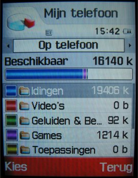 Het derde onderdeel is het onderdeel Mijn telefoon. Hierin vind men alle data; afbeeldingen, video’s, muziek en geluiden, die op het toestel zijn geplaatst. Een aantal onderdelen hiervan zijn al besproken bij de camera. Wanneer men niet een foto of video wil maken, kan men via dit onderdeel de gemaakte of gedownloade foto’s en video’s bekijken. Samsung had op het geleverde toestel de diverse mappen gevuld met een groot aantal foto, video en audiobestanden. Al deze bestanden kunnen worden bekeken of afgespeeld.