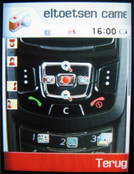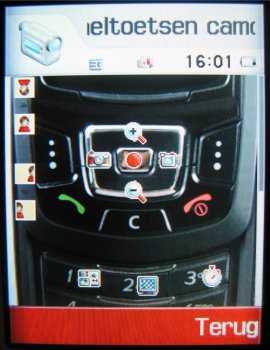 Via de sneltoetsen op het toetsenbord en de zijkant van het toestel kan men een groot deel van de instellingen en opties die hierboven genoemd zijn instellen. Tevens kan men een keuze maken uit of de fotocamera op het volledige scherm moet worden weergegeven. Een optie die ook in het menu ingesteld kan worden.