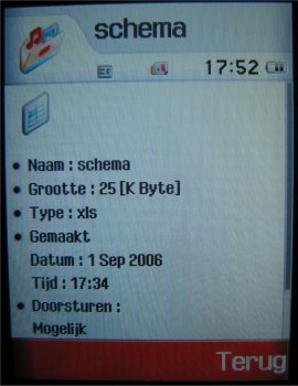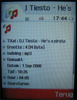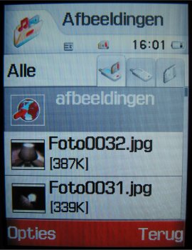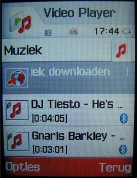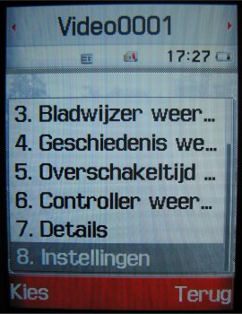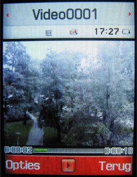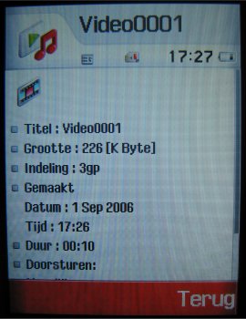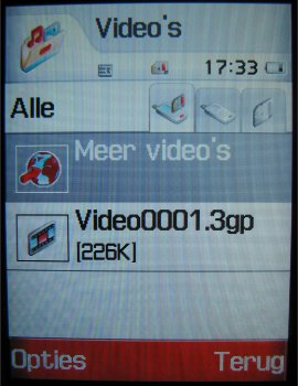 Voor videobestanden geldt bijna hetzelfde. Deze bestanden worden opgeslagen in het MP4 en 3GP formaat en in het videogedeelte van het bestandsbeheer. Daar kan men de video bekijken, hernoemen, wissen, een wisbeveiliging geven of gewoon de afbeelding versturen via MMS, Email of Bluetooth.