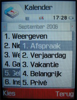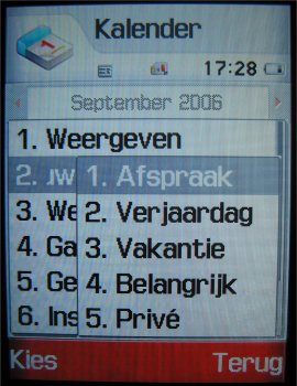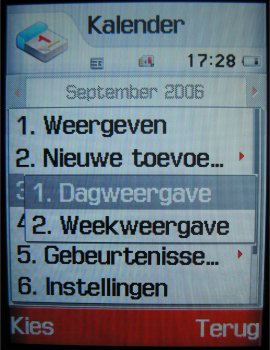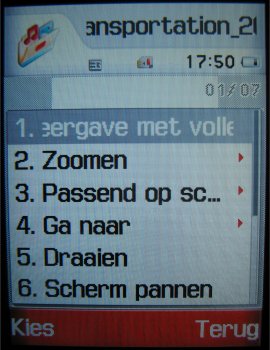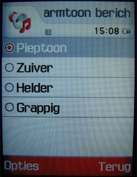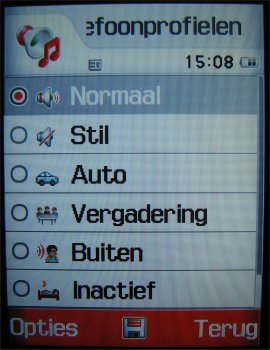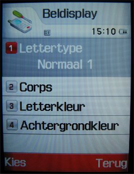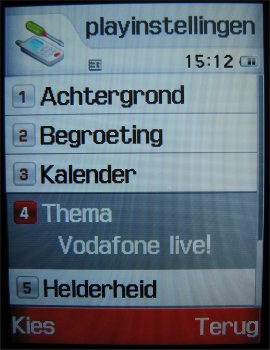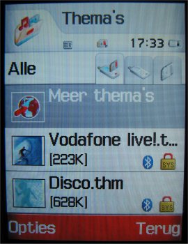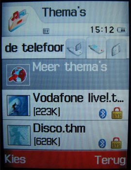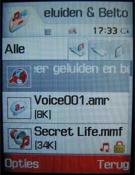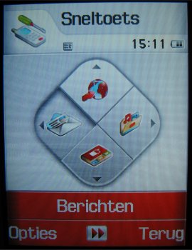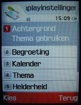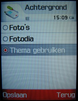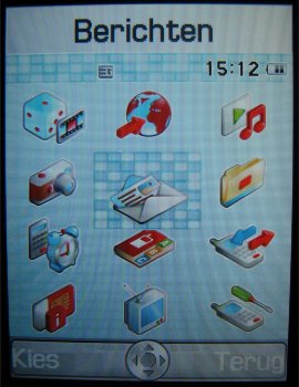 De bediening van het complete menu is verder enorm handig en overzichtelijk en kan door middel van de 5-richtings bedieningstoets in vier richtingen plaatsvinden. Men kan thema’s toepassen en de tekstweergave aanpassen. Ook overige thema’s instellen is zelfs mogelijk en heeft tot gevolg dat ook de beltonen mee veranderd worden zoals bij menig ander merk. Absoluut een unicum voor een Samsung toestel. Helaas zijn er maar twee thema’s meegeleverd.