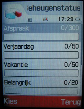 Het toestel gebruikt het geheugen van 16 MB speciaal voor MMS berichten, Email berichten en het bestandsbeheer, die alle afbeeldingen, video’s, muziek en geluiden herbergt. Daarnaast is er nog ruimte voor 420 SMS berichten, 30 pushberichten, 300 kalendernotities, 50 verjaardagen, 20 belangrijke notities, 20 prive notities, 20 taken en 20 memo’s en 1000 contactpersonen. Deze data wordt niet afgehaald van de 16 MB.