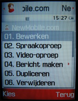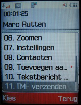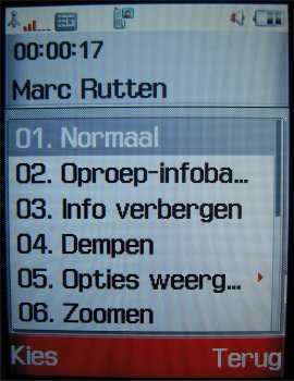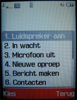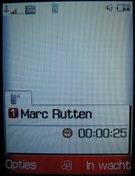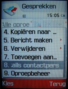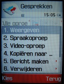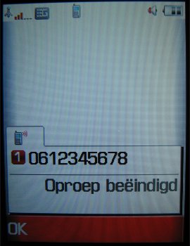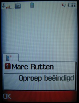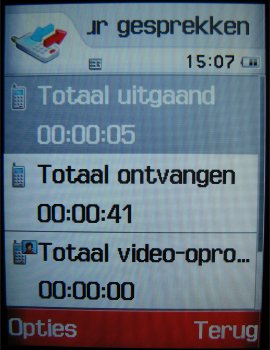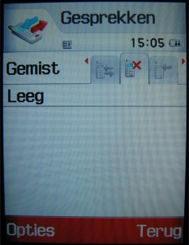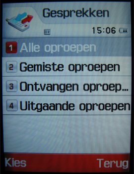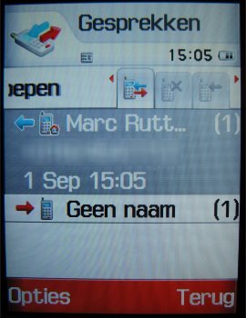 Heeft men na een gesprek de behoefte de gesprekkenlijst te raadplegen dan kan dat via het menu of via de opneemtoets. Via beide opties komt men in het menuonderdeel oproepenlijst. Door de 5-richtings bedieningstoets in vier richtingen te bewegen kan men door het hele menu alle informatie opvragen. Kiest men een oproep dan krijgt men een overzicht van de naam en het nummer van de persoon te zien en daarnaast de datum en tijd van het gesprek. Helaas geen duur van het gesprek. De duur van het gesprek kan alleen opgevraagd worden via de menuoptie, waar ook alleen de tellers gewist kunnen worden.