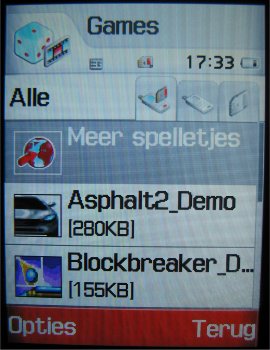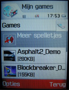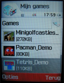 Qua games is het toestel redelijk voorzien met zes games. Die games staan al op menig ander Samsung model en men vindt deze terug in het gedeelte Mijn Games.