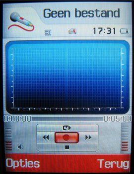 Helaas, geen voice dailing, maar de spraakrecorder of voice memo ontbreekt echter niet. De spraakrecorder neemt gesprekken en andere omgevingsgeluiden netjes op in AMR formaat. Het is mogelijk om deze bestanden te gebruiken als beltoon in het toestel. Verder valt er weinig op te merken bij deze functie behalve dat de equalizer gelijk is aan de MP3 speler op andere bedieningsknoppen na.