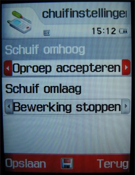 Er is verder geen verschil te merken tussen het menu wanneer het toestel geopend of gesloten is. Wat wel optreedt is dat wanneer men het toestel dicht schuift, de toetsenblokkade gelijk op het toestel gezet wordt. Een erg handige functie voor mensen die na een gesprek gelijk het toestel dichtschuiven en in hun binnenzak doen. Men kan zelf de functies wijzigen achter het schuifmechanisme.