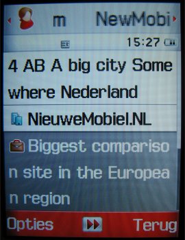 Het tweede onderdeel is de XHTML browser die in het toestel aanwezig is. Met deze browser is het mogelijk om internet pagina’s te bezoeken via een GPRS verbinding. De internet browser is niet zo geavanceerd als bijvoorbeeld de Opera browsers, maar geeft wel op een zeer nette manier de gevraagde site weer. In de browser zitten verder geen speciale onderdelen. Wat wel erg netjes is, is het feit dat de instellingen voor het surfen al in het toestel aanwezig zijn.