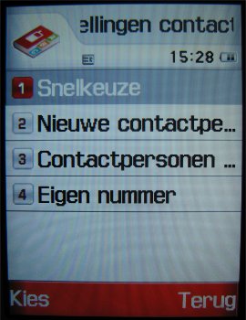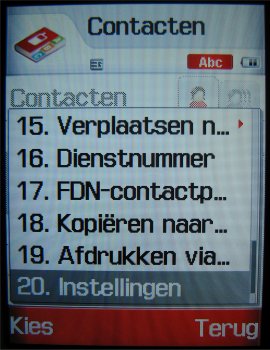 Het provider diensten onderdeel vindt men terug bij het telefoonboek van het toestel.