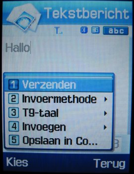 Het invoeren van een bericht via T9 of de standaard invoerfunctionaliteit gaat goed. Er zijn daar geen problemen terug gevonden. De berichten kunnen verstuurd worden en opgeslagen, alleen opgeslagen of alleen verstuurd worden naar de afzender. Ook kan men diverse nummers instellen waarvan men geen berichten wil ontvangen. Tevens zijn antwoordverzoek en ontvangstbevestiging ook aanwezig.