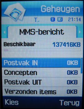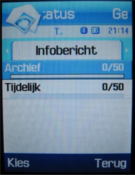Op het toestel kan de gebruiker maximaal 200 SMS berichten, 50 infoberichten, 100 serverberichten en configuratieberichten opslaan. De hoeveelheid opslag voor MMS en Email berichten hangt af van de hoeveelheid aanwezig geheugen in het toestel zelf.