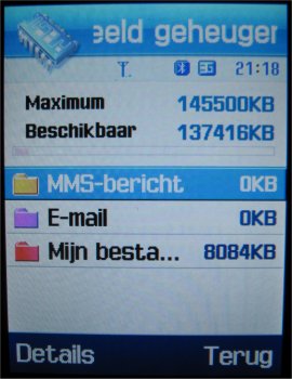 Het toestel gebruikt het eerste deel van 145 MB speciaal voor MMS berichten, Email berichten en het bestandsbeheer, die alle afbeeldingen, video's, muziek en geluiden herbergt. Daarnaast is er nog ruimte voor 200 SMS berichten, 100 serverberichten, 100 kalendernotities, 50 verjaardagen, 20 taken, 20 notities en 1000 contactpersonen. Deze data wordt alleen niet afgehaald van de 145 MB.