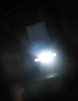 De flitser die aanboord geplaatst is heeft een maximale reikwijdte van hooguit een meter. Verder komt het lampje aan de voorkant van het toestel niet. Voor korte afstanden is het nuttig, voor langere totaal niet.