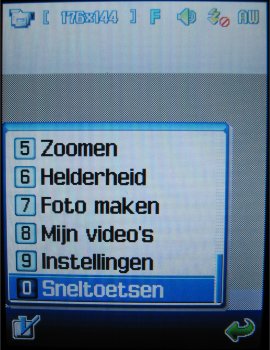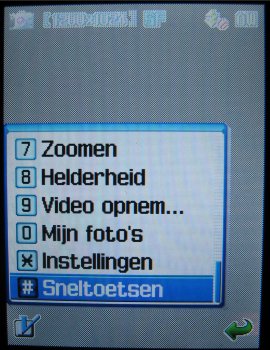 Via de sneltoetsen op het toetsenbord en de zijkant van het toestel kan men een groot deel van de instellingen en opties die hierboven genoemd zijn instellen. Tevens kan men een keuze maken uit of de fotocamera op het volledige scherm moet worden weergegeven. Een optie die ook in het nieuwe menu ingesteld kan worden.