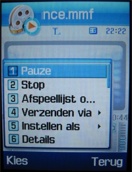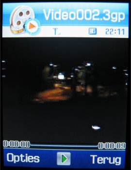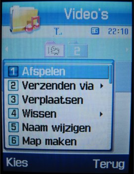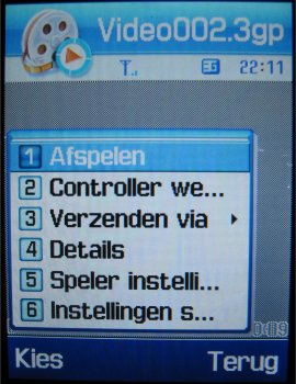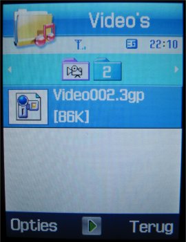 Voor video bestanden geldt bijna hetzelfde. Deze bestanden worden opgeslagen in het 3GP formaat en in het video gedeelte van het bestandsbeheer. Daar kan men de video bekijken, hernoemen, wissen, een wisbeveiliging geven of gewoon de afbeelding versturen via MMS, Email of Bluetooth. De video's op het volledige scherm bekijken is niet mogelijk met de Z510. Vreemd!