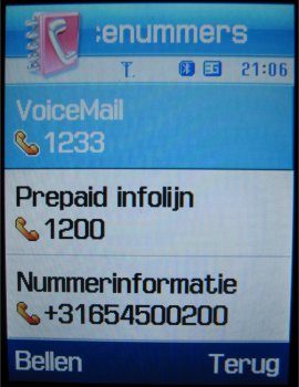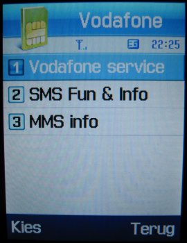 Het laatste onderdeel van het Toepassingen gedeelte is het Vodafone diensten onderdeel dat ook voor een deel terug komt bij het telefoonboek. In het telefoonboek komt alleen het gedeelte qua provider telefoonnummers terug. Het andere deel met informatie over de provider vindt men onder toepassingen terug.