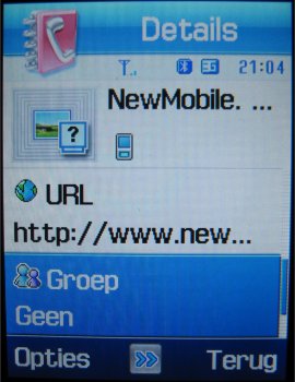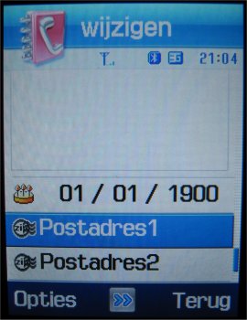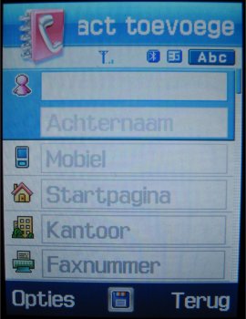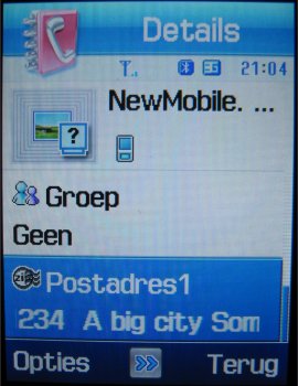 Bij een contactpersoon kan men de volgende data opslaan: Achternaam, Voornaam, Mobiel nummer, Privé nummer, Kantoor nummer, Fax nummer, Extra nummer, Email adres, Bellergroep, Webpagina, Notitie, Verjaardagsdatum, Postadres 1 en Postadres 2. Daarnaast zijn er nog de speciale opties als de Foto, Beltoon en Berichttoon. Eindelijk op een niveau dat men zegt ja hier kan men wat mee. Punten die erg gemist werden zijn nu allemaal opgenomen. Het is nu nog alleen doorvoeren in het complete portofolio.