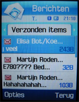 Samsung laat dit nog niet zien en ook niet in deze Z510. Het toestel behoort ook tot de groep toestellen met de mogelijkheid om groep SMS berichten te versturen en dat is al een enorme verbetering ten opzichte van vroegere toestellen. Verder zijn wel alle functies aan boord die men mag verwachten; SMS, MMS, EMS en nu ook Email via POP3 en SMTP, naast Email via SMS dat al lang in Samsung toestellen aanwezig is.