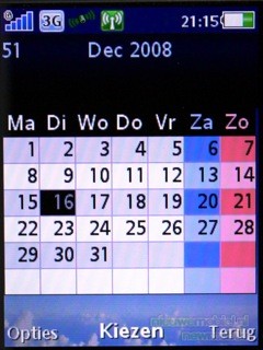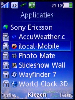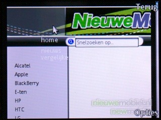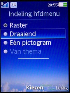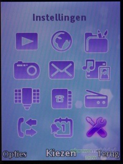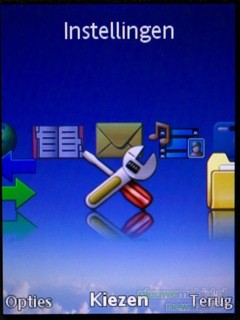 Het menu wordt bereikt door het midden van de navigatietoets in te drukken. Het menu zelf is overzichtelijk en alle toepassingen zitten op een logische plaats. De mogelijkheden voor het aantal snelkoppelingen of favorieten is ruim voldoende. Behalve de vier snelkoppelingen voor de navigatietoets kunnen ook snelkoppelingen worden toegevoegd in het activiteitenmenu dat met de daarvoor bestemde knop te bereiken is. Het menu kan in rastervorm, draaiend of met één pictogram worden weergegeven.