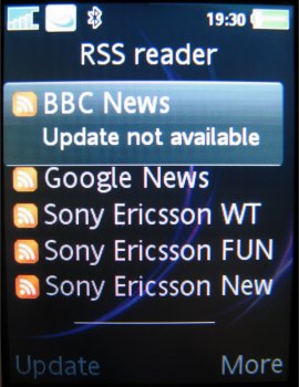 Als nieuw onderdeel in de K800i is de RSS-lezer ingebouwd in het onderdeel Berichten. Men kan nu dus in het toestel direct RSS-berichten lezen. RSS is een onderdeel in een website die een opsomming realiseert van alle aanwezige nieuwsberichten. Deze kunnen door middel van een kleine en eenvoudige pagina opgevraagd worden. Deze manier van opvragen en beschikbaar stellen van nieuws is enorm in opkomst en geeft de gebruiker de mogelijkheid snel en eenvoudig uit een lijst met hoofdpunten het nieuws te filtreren. Sony Ericsson past het toe op bijna alle modellen en laat zien in deze K800i dat het volledig integreren van RSS het gebruikersgemak enorm verhoogd. Absoluut een nette oplossing en ook in de toekomst een veel gebruikte oplossing.
