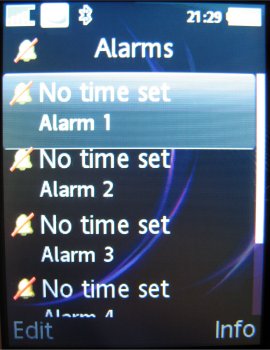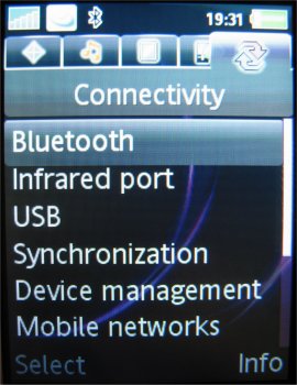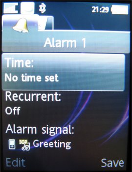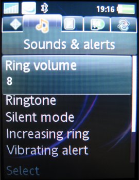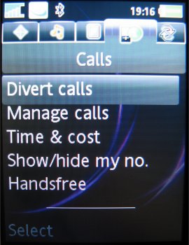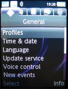 Binnen het menuonderdeel Instellingen zijn alle zaken ondergebracht die het mogelijk maken de telefoon compleet naar eigen inzicht in te stellen. De gebruikersinterface biedt hier een vijftal tabbladen aan waarop de verschillende instellingen gegroepeerd staan. Op het tabblad Algemeen zijn onder andere de instellingen voor tijd, datum, taal te vinden. Ook de individualiseerbare profielen en blokkeringen hebben hier een plaats gekregen. Helaas, is het nog niet mogelijk om het tijdsinterval van de automatische blokkering in te stellen. Via het tabblad Geluiden & Signalen zijn onder meer belvolume, beltoon en berichtsignaal aan te passen. Voor beeldscherminstellingen als achtergrond, thema en screensaver kan men terecht op het derde blad, Display. Het een na laatste blad heet Gesprekken. Hier is onder andere informatie te vinden met betrekking tot de gevoerde gesprekken, zoals kosten en tijdsduur. Hiernaast kunnen de diverse omleidingen en doorschakelingen ook op dit tabblad worden teruggevonden en ingesteld. De vijfde optie is Verbindingen, waaronder men alle instellingen vindt die te maken hebben met de connectiviteit van het toestel, zoals de GPRS en de Bluetooth instellingen.