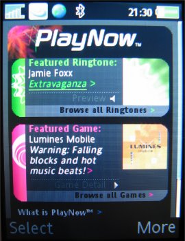 Het eerste onderdeel wanneer men het menu opent is een programma genaamd Playnow. Bij het pakket van het toestel worden voor dit pakket ook voorwaarden meegeleverd. Het stukje software is bedoeld voor gebruikers om MP3 bestanden en beltonen te downloaden. Het is een web-based programma die de mogelijkheid biedt online muziek bestanden te downloaden.