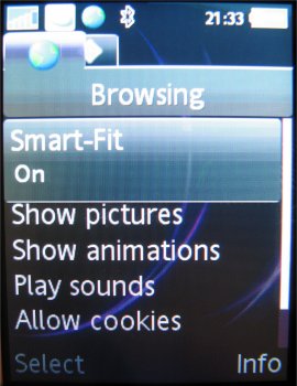 De meegeleverde nieuwe NetFront browser is vooral bedoeld om content pagina’s te tonen van providers zoals Vodafone, T-mobile en Orange. Via deze pagina’s kunnen gebruikers dan media bestanden als achtergronden, thema’s en beltonen downloaden of simpelweg het nieuws lezen. Maar met normale pagina’s heeft de XHTML browser ook geen moeite. Verder kan men in de browser alle mogelijke instellingen doen zoals het al dan niet tonen van afbeeldingen, het aanmaken van eigen bookmarks en het invoeren van een eigen URL.