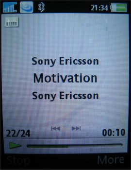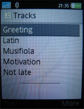 Hoewel het toestel verschillende bestandsformaten eet, converteert de meegeleverde software audio CD’s alleen naar MP3. Vanaf 96 kbit/s klinkt het geluid lekker. Gecombineerd met een Memory Stick van 64 MB, passen er toch al snel 2.5 CD in de telefoon. Tijdens het converteren van de audio CD wordt metadata (artiest, albumnaam en tracktitel) online opgevraagd. Via deze meta data worden de muziekbestanden gerubriceerd waardoor ze overzichtelijk in het menu verschijnen.
