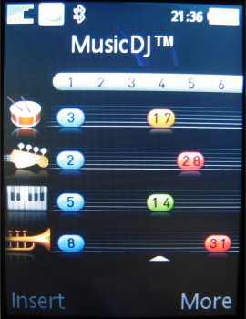 MusicDJ is een erg leuke muziekcomposer die men al kent uit andere Sony Ericsson modellen. Men kan zelf zijn of haar eigen muziek en/of beltoon componeren. Het werkt allemaal vrij simpel en door wat te proberen komt men al snel op een leuk deuntje dat gebruikt kan worden als beltoon of andere notificatie.