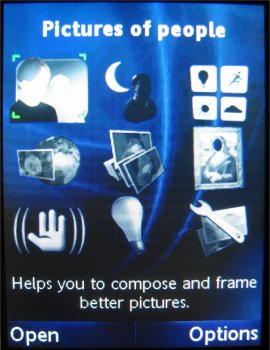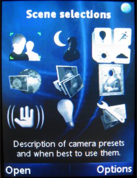 Daarnaast is er een nieuw onderdeel in dit toestel genaamd Scènes. Dit zijn speciale vooraf ingestelde opties die men kan gebruiken in allerlei omstandigheden. Na het kiezen van een optie worden allerlei instellingen automatisch ingesteld zoals de nachtmodus en de image stabilizer. De aanwezige opties zijn: Auto, Nacht landscape, Nacht portret, Landscape, Portret, Strand/Sneeuw, Sport en Document. Allemaal opties, die hier en daar wel eens getoond zijn in een ander toestel zoals de V903, maar niet zo uitgebreid.
