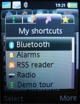 Via snelkoppelingen kunnen veelgebruikte toepassingen rechtstreeks benaderd worden vanuit de standby-stand. De bedieningstoets omhoog bewegen kan dan bijvoorbeeld het adresboek of de agenda openen. Men kan deze snelkoppelingen zelf instellen.