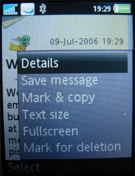 De K800i biedt naast SMS ook MMS, picture messaging en email (POP3/IMAP4). De diverse soorten berichten worden in verschillende mappen opgeslagen. Van elk verzonden bericht wordt altijd een kopie bewaard in de map Verzonden Items. Dit zal zeker niet iedere gebruiker noodzakelijk vinden. Het is jammer dat dit niet uit te schakelen is.