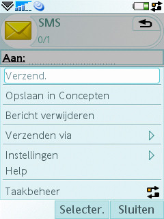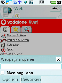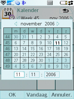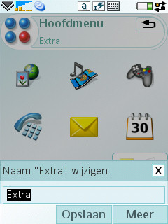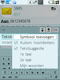 De tweede mogelijkheid is invoeren via een speciaal virtueel toetsenbord. Deze kan men oproepen via de bovenste regel van de interface waarop ook de dekking en GPRS status zichtbaar is. De icoon voor dit toetsenbord wordt alleen getoond wanneer men in een invoerkader is. Daarna kan men het virtuele toetsenbord opvragen.