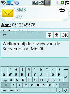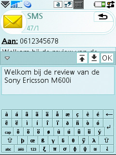 Invoeren van de tekst kan op drie manieren bij de M600i. De allereerste manier is via de handschriftherkenning. Men schrijft de vorm van een letter op het scherm en krijgt dan deze letter te zien in de regel waar men schrijft. De functie werkt erg goed op de M600i. De manier waarop de diverse letters, cijfers en tekens tekent moeten worden is een “must”.