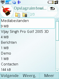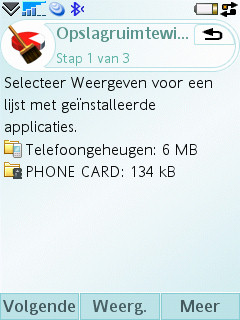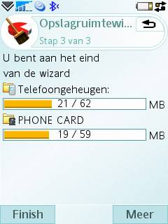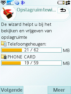 De speciale meegeleverde storage wizard wordt gebruikt voor het weergeven van het gebruikte geheugen en om te tonen hoe het geheugen over de applicaties verdeeld is.