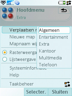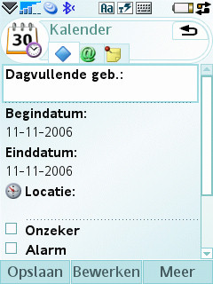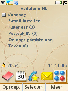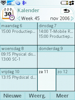 Nadat men het menu geopend heeft of een bepaalde functie heeft geselecteerd dan zal deze tussen twee balken worden geplaatst. Op de bovenste statusbalk wordt alle informatie weergegeven over ingekomen/gemiste gesprekken, het batterijniveau, de Bluetooth of infrarood status, virtual keypad indicator en signaalniveau. De onderste balk is alsware de bediening van het programma met meestal een mogelijkheid tot het selecteren van een menu. Dit werkt exact omgekeerd als op de P990i. Waarom hiervoor gekozen is, is totaal niet duidelijk.