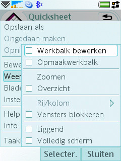 Twee nieuwe punten op de bovenste balk zijn een klein pijltje aan de linkerkant die de mogelijkheid geeft tot het openen van een pop-up menu. Hierin worden een aantal standaard applicaties getoond, die door gebruikers gestart kunnen worden, zoals het opzetten van een nieuw gesprek, een nieuw bericht of een nieuwe agendanotitie. Dit is een eenvoudige manier om snel dergelijke opties te openen. Ook is het mogelijk direct de Bluetooth of infrarood instellingen te wijzigen. Hiervoor hoeft men nu niet meer het complete configuratiescherm in.