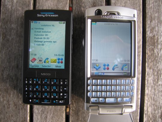 De verschillen met de P990i zijn: het feit dat men geen cradle/bureauhouder meegeleverd krijgt, maar 1 stylus, geen M2 geheugenkaart converter en dat er geen extra materiaal nodig is voor het verwijderen van een klep. Deze is namelijk niet op de M600i aanwezig. Maar eerste de handleiding van het nieuwe toestel.