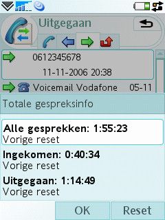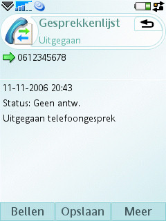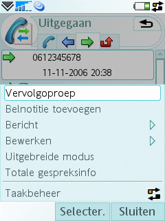 Nadat men een gesprek gevoerd heeft is het mogelijk om de gesprekkenlijst te openen. Diverse opties zijn aanwezig en geven de gebruiker allerlei mogelijkheden om de gesprekkenlijst te beheren. Een groot aantal opties zijn toegevoegd als het maken van een notitie of taak direct vanuit de gesprekkenlijst.