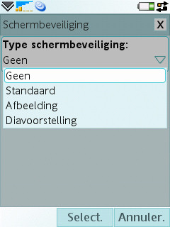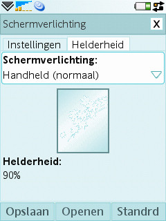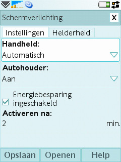 Het uitschakelen van het scherm en daarbij batterijtijd besparen is op diverse manieren mogelijk. Men kan een screensaver instellen door middel van een foto op de grootte van het complete scherm. Men kan geen klok instellen als screensaver. Daarnaast is het ook nog mogelijk om te kiezen voor een scherm dat altijd aan, altijd uit of automatisch uitschakelt na een bepaalde periode. Alle instellingen kan men in één menu instellen.