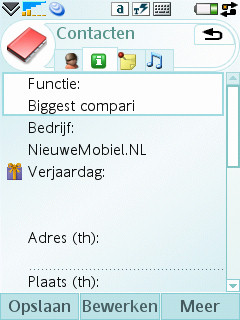 Per contactpersoon kan men standaard een redelijk aantal punten met data toevoegen: Voornaam, Achternaam, Bedrijf, Functie, Telefoon (werk), Telefoon (thuis), Mobiel (werk), Mobiel (thuis), Beltoon, E-mail (werk) Fax (werk), Internet, Bedrijfsinformatie (naam, adres, plaats, regio, postcode en land) en Persoonsinformatie (naam, adres, plaats, regio, postcode en land). Mocht men dan meer data willen toevoegen dan kan dit via “Veld toevoegen” en kan men diverse extra’s gegevens toevoegen zoals: Telefoon (werk), Telefoon (thuis), Mobiel (werk), Mobiel (thuis), Beltoon, E-mail (werk) Fax (werk), Internet. De optie voor onder andere verjaardagen is nu in UIQ 3.0 ook opgenomen.