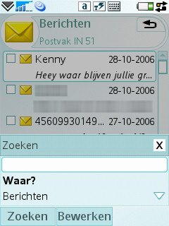 Alle mogelijkheden op het gebied van messaging zijn aan boord van dit toestel. MMS, SMS, EMS, email via POP3, SMTP en IMAP4 server, Men kan de diverse berichten opvragen via het berichten icoon in het menu. Tevens is de optie bezorgbevestiging aanwezig en kan men zoeken op berichten. Vooral dit laatste is een uitkomst.