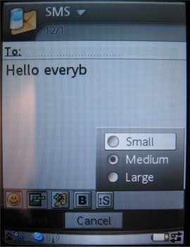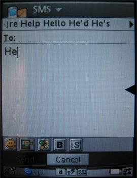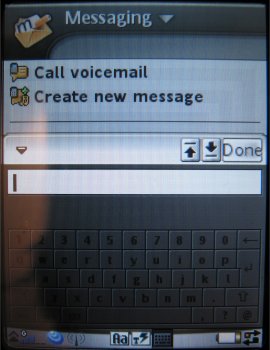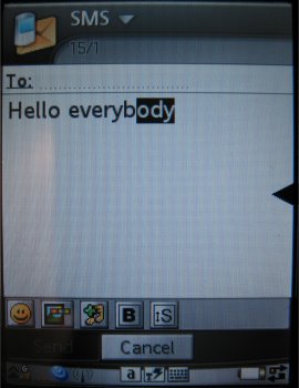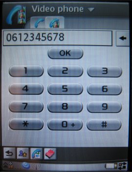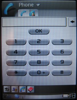 De derde mogelijkheid is invoeren via een speciaal virtueel toetsenbord. Deze kan men oproepen via de onderste regel van de interface waarop ook de dekking en GPRS status zichtbaar is. De icoon voor dit toetsenbord wordt alleen getoond wanneer men in een invoerkader is. Daarna kan men het virtuele toetsenbord opvragen.