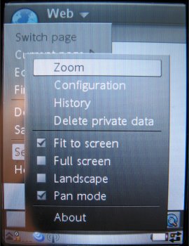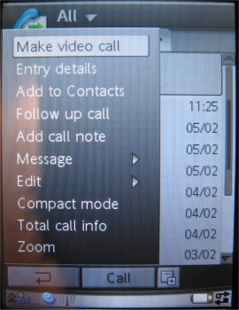 Verder kan via de rechter menu sneltoets op het externe toetsenbord een speciaal menu oproepen worden dat gebruikt wordt tijdens het bellen of gewoon in de normale modus. Men kan via het menu diverse punten instellen, zoals de stille modus, het belvolume en de doorschakeling. Daarnaast kunnen de gesprekkenlijst, de status van het toestel en de toepassingen bekeken worden. Belt de gebruiker, dan kan via dit menu het gesprek worden beëindigd, het gesprek in de wacht gezet worden, de tonen uitgezet worden, de microfoon gedempt, het nummer gekopieërd of de luidspreker aangezet worden.