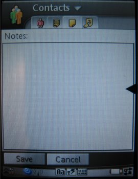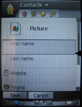 Het complete veld van een contactpersoon bevat uit vier tabbladen: het eerste tabblad wordt een gedeelte van de bovengenoemde gegevens getoond, het tweede tabblad toont de overige informatie zoals adres en verjaardagsdatum, het derde tabblad is voor notities en het vierde tabblad voor het instellen van een beltoon en een voice dailling command. Een foto kan aan een contactpersoon worden gehangen op het eerste tabblad. De foto komt terug bij het snelkeuze scherm en wanneer men een persoon belt of door een bepaalde persoon gebeld wordt. Naast deze tabbladen kunnen de diverse contactpersonen vanuit het contactpersonenbeheer programma verstuurd worden via Bluetooth, infrarood, email en SMS. Contactpersonen opslaan op de geheugenkaart is niet mogelijk met een UIQ 2.1 interface, maar wel in de UIQ 3.0, opnieuw een uitbreiding. De contacten kunnen worden opgedeeld onder diverse groepen en het zal straks mogelijk zijn direct gebruik te maken van een instant messaging client of chat functie. Deze mogelijkheid zit niet standaard in het toestel, maar er is nog genoeg tijd tot volgend jaar om dit eventueel wel toe te voegen.