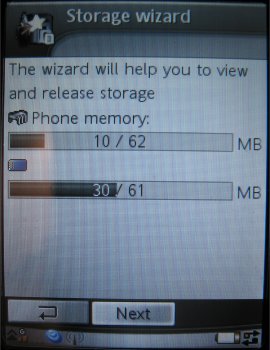 De speciale meegeleverde storage wizard wordt gebruikt voor het weergeven van het gebruikte geheugen en om te tonen hoe het geheugen over de applicaties verdeeld is.