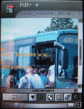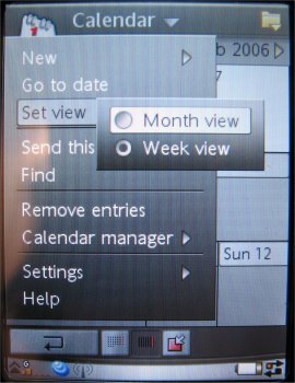 Via de genoemde iconen zal het betreffende programma geopend worden. In de lijst van vijf zal alleen één speciale icoon uitgelicht moeten worden. Dit is namelijk de icoon Toepassingen. Hieronder vind men namelijk een aantal toepassingen. Bekend was van de P910i dat niet elke toepassing die op het toestel geïnstalleerd was ook werkte in flip closed modus. Een programma moest namelijk het speciale menu wel ondersteunen. Is dit niet mogelijk dan werd deze ook niet in de lijst weergegeven. Dit is nu veranderd op de P990i. Alle programma's die men op het geopende scherm draait kan men ook openen in het gesloten scherm. Dit komt omdat 90% van het scherm nu wordt gebruikt wanneer de flip gesloten is. Deze wijziging zorgt voor een enorme verbetering in het gebruik van het toestel. De flip closed modus is nu bijna identiek aan de flip open modus.