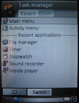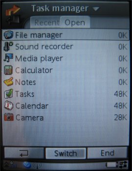 De nieuwe taskmanager in het toestel is een simpel versie. Verwacht geen Sman mogelijkheden. Als gebruiker is het mogelijk om een lijst op te vragen van taken en deze opnieuw te starten of te sluiten. Men kan switchen tussen taken en dat is het dan. Het automatische afsluiten van applicaties wanneer de flip gesloten wordt is er niet bij als is de vraag of dat nog nodig is in de P990i.