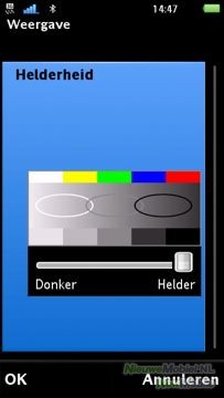 Wij hadden de schermhelderheid voortdurend op 100% staan. Dan nog is het scherm niet heel helder, en zou je af en toe willen dat het helderder kan. Het scherm is redelijk af te lezen in zonlicht maar doordat het behoorlijk spiegelend is, is het soms ook slecht te zien. In vrijwel de gehele interface kan het beeld horizontaal kantelen. Alleen bij de startschermen werkt die niet.
