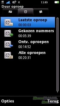 Wanneer een oproep binnenkomt kan de beltoon snel gedempt worden door het toestel met het scherm naar beneden te draaien. Het gespreksoverzicht is te openen met de oproeptoets en toont gemiste en ontvangen oproepen en gekozen nummers. In het menu staat nog een uitgebreider logboek met onder andere de duur van oproepen en packet-gegevens.
